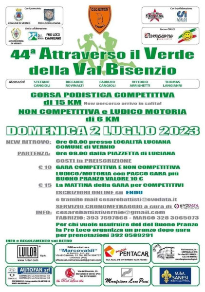 Domenica 2 luglio “44a Attraverso il Verde, corsa podistica e ludico motoria a Luciana di Vernio